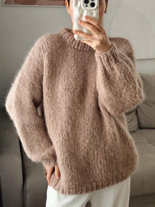 Базовий светр - теплий і затишний. Сплетений вручну. Класичний, позачасовий дизайн, нічого зайвого, ви з легкістю зможете вписати його в свій гардероб. Фасон oversize допоможе залишатися завжди в розслабленому стані, відчувати комфорт і невимушеність.