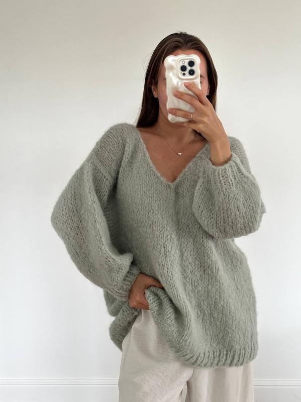 Базовий светр - теплий і затишний. Сплетений вручну. Класичний, позачасовий дизайн, нічого зайвого, ви з легкістю зможете вписати його в свій гардероб. Фасон oversize допоможе залишатися завжди в розслабленому стані, відчувати комфорт і невимушеність.