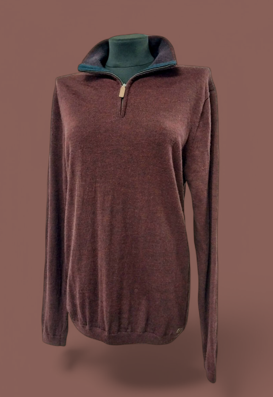 Теплый джемпер из шерсти мериноса с воротничком на молнии. Очень мягкий, легкий, приятный на ощупь. Не смотря на тонкое руно теплое и хорошо согревающее. Модель унисекс. Можно мужчине можно женщине. Цвет сложный, смесь коричневого с баклажаном. Выглядит круто. Как будто винтаж, тихая роскошь и т.д. Актуальный и воротничок на молнии, так называемая модель поло, в тренде этого сезона. Можно миксовать с любыми вещами и выглядеть и стильно и тепло. Размер: L - 50 - 14 Замеры: Довж.виробу-74см Шир.плеч -45см ПОГ -50см ПОТ -45 ПОБ -48сс Длж.рукава -69см Для девушек, обратите внимание на длинные рукава, кто не любит, это не ваша модель. Или можно подкачивать. Джемпер хорошо тянется и на размер больше. Состав - 100% шерсть мериноса Стирать в 30° руками, или в деликатном режиме и в режиме шерсть. Это очень важно, если не выполнять инструкции можно испортить вещь. Стан идеален, просто невероятный как новый. Заказывайте прямо сейчас, пишите для уточнения деталей. Заходите на мою страницу найдёте еще много чего интересного.