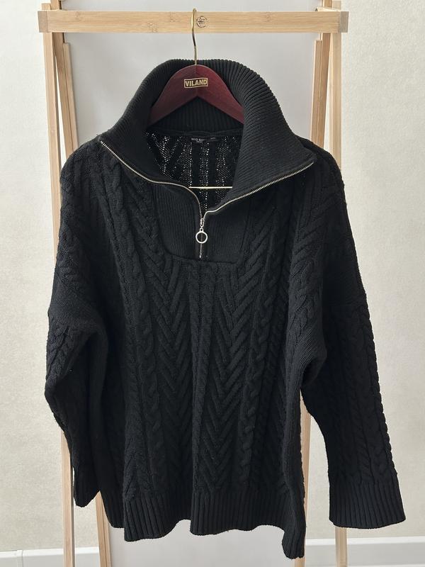 Чорний светр оверсайз із застібкою на горлі. Блискавка дає змогу як застібнутись повністю, коли дуже холодно чи вітер, так і розстібнутись і зробити образ більш стильним. Розрахований на низькі температури і класно поєднується з іншими речами) Стан прекрасний, бо светр майже не носили. Пошкоджень чи зачіпок немає.
