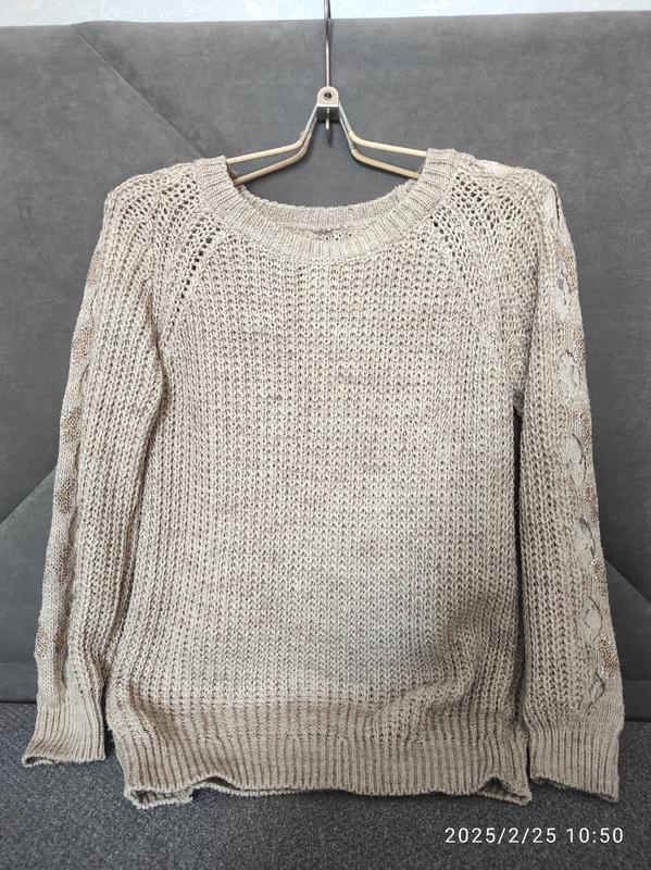 Свитер со стразами на рукавах (стразы все на месте, при принынии не отпадают). Цвет - бежевый Размер S 50% котона / 50% акрила Турция