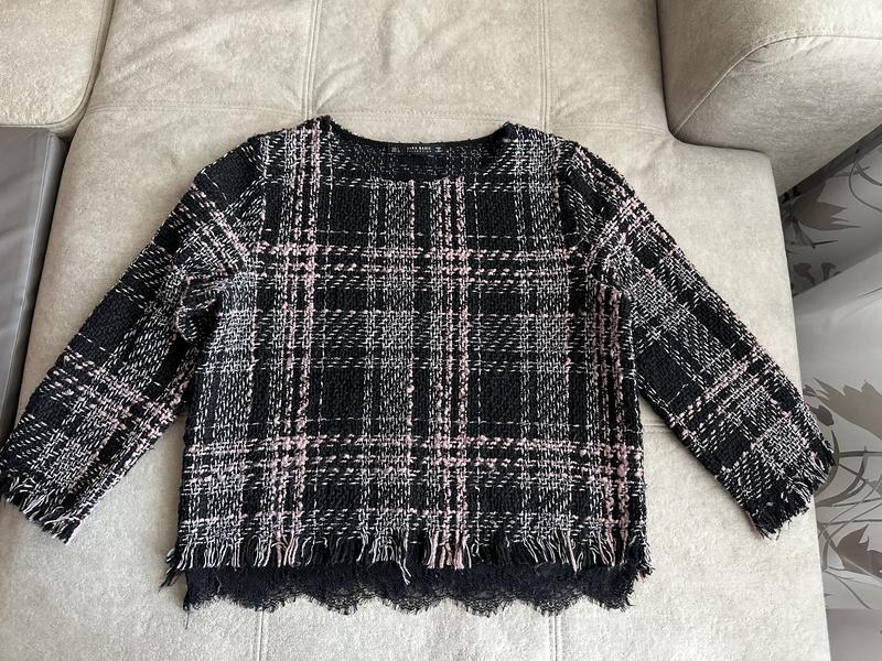 Жіночий пуловер з твіду Zara, розмір L. Елегантна, рукав 3/4 Довжина 54 см, ширина 50 см, плече 8 см, рукав від плеча 47 см В ідеальному стані.