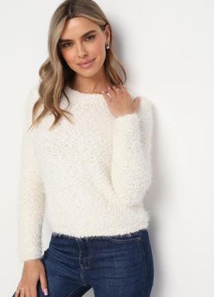Шикарный белый свитер, кофта букле f&f Состояние: идеальный Состав: 66%полиэстер+34%нейлон мягкая и приятная Размер указан: 10, 38EUR Замеры: * длина - 50 * рукав - 60 * плечи - 33 * но груди - 45 еластична ************ Подписывайтесь, постоянные обновления товара🌺