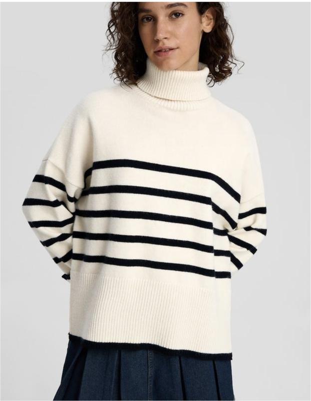 Теплий светр , стан ідеальний, молочного кольору , з розрізами по боках . Підійде на розмір XS - S. BERSHKA