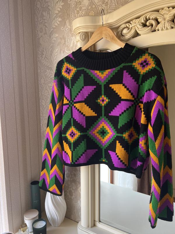 Свитер в этностиле. Размер Универсальный. Фасон оверсайз. Плечи опущенные. Подходит к юбкам и брюкам, джинсам, универсальная вещь для яркого образа. Не кашлатится, качество отличное.