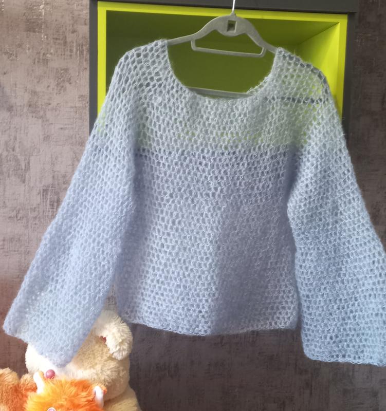 Свитер паутинка из мохера, серо голубого цвета