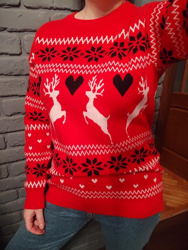 Рождественский свитер с оленями и сердцами ✨ Описание товара: Теплый и мягкий красный свитер с зимним принтом. Идеальный вариант для праздничного настроения, новогодних вечеринок или просто для уютных зимних дней! 📩 Пишите в сообщения для заказа или дополнительных фото!