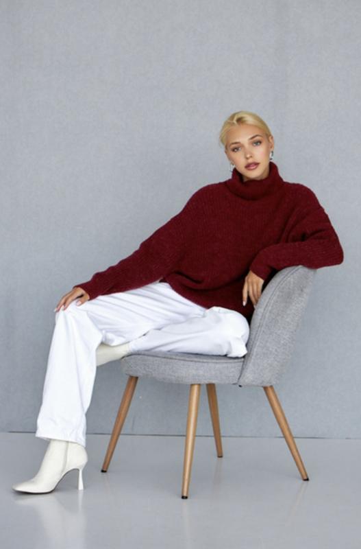 Фірмений світер Calatura Італія розмір 48 Заміри Довжина 55 cm пог 55 см рукав від горловини 65 см Стан новий без бірки На рукаві вздовж плетена коса Колір гранат Качество супер