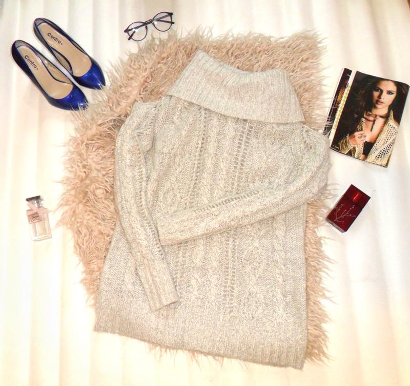 Трендовий светр-туніка, плетений з широкою горловиною і відкритими плечима Можна носити під лосини або ботфорди {на невисоку дівчину} Дуже м'який Розмір S Довжина: 70 см ПОГ 43 см ПОТ: 44 см Довжина рукава від плеча: 64 см