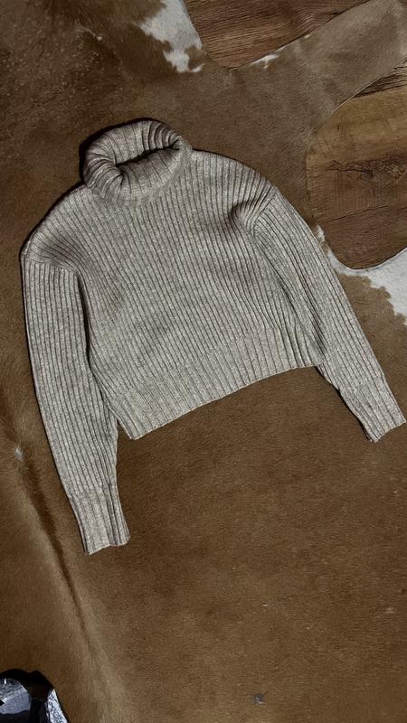 укороченный свитер бежевого цвета с высоким воротником очень приятный к телу