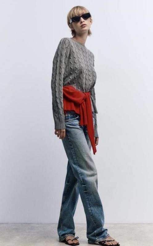 Серый свитер джемпер кофта унисекс с косами zara