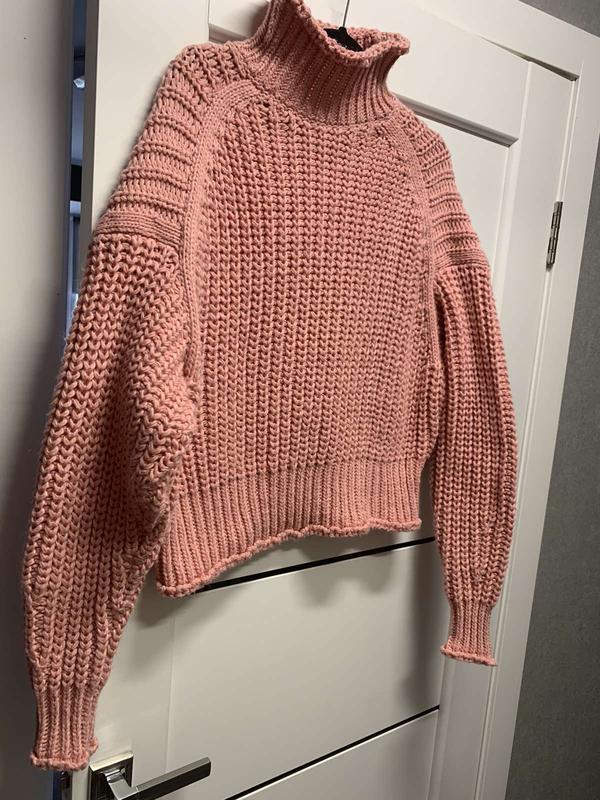 Свитер крупной вязки H&М великолепного бледно розового цвета. Размер М, за счет модели оверсайз подойдет и на L. Замеры- длина рукава от горловины 85 см., полу ОГ- 65 см., длина 49 см. Стан нового.