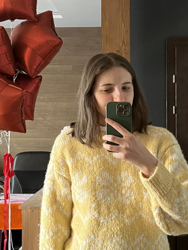 Не вписався в гардероб. Рекомендую на С, але на дівчинку нижче (в мене 174 см), тоді рукава будуть більш правильні та довжина приємна. Або навіть на хс, думаю ще краще буде, з таким приємним оверсайз. Дуже приємний жовтий актуальний, освіжає.