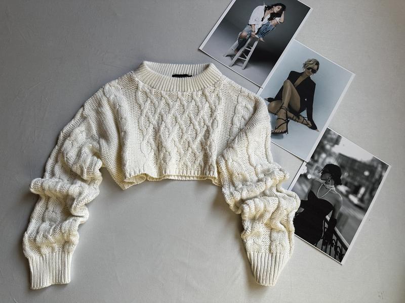 Стильный укороченый свитер. Крупная вязка. На платье или самостоятельная вещь в гардеробе. Ширина под руками 60 см Длина по спине с воротником 36 см Рукав с воротником 84 см