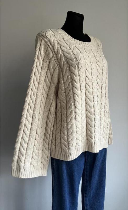 Светр в кольорі айворі 60% бавовна, 40% акрил Стан ідеальний Розмір Л Півобхват грудей - 61 см Довжина рукава від горловини -68 см Довжина - 60 см