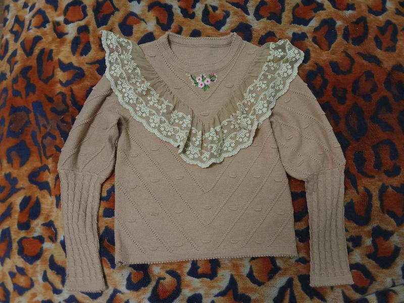 Shein светр, розмір М(38/6), стан дуже хороший без нюансів Рукав від плеча 64 Довжина 56 По плечах 39 Напівобхват грудей 46 Напівобхват внизу 44