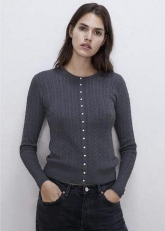 🌿серый фактурный свитер от Zara с красивыми пуговицами, красиво тянется Размер:S Замеры:ПО груди 38 см, длина 46 см, рукав от горловины 64 см