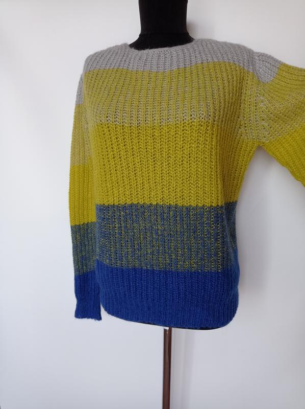 Мягкий нежный обдушной, красивый состав шерсть мохер 52%, состояние идеальное. Пог. 52, рукав 61, длина 60.
