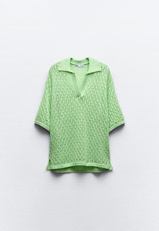 Светр об'ємного крою, комір поло, бічні розрізи внизу. Тканина котон