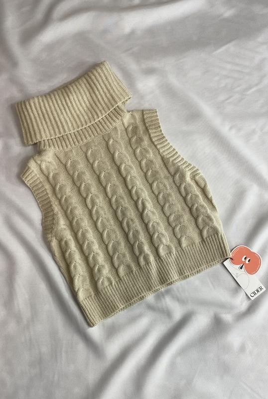 Новенький вʼязаний светр кольору айворі з високим горлом, без рукавів. З біркою