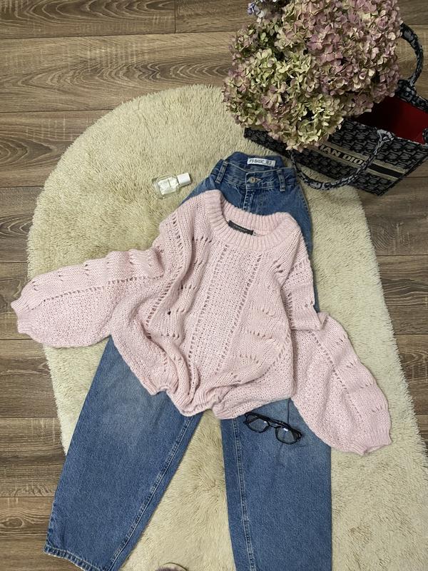 Бледно розовый укороченный свитер не плотной вязки размером XL, можно L, состав акрил и полиамид, длина 50см., полуобхват груди 68см., низ 58см., длина рукава от горловины 71см. Стан идеален. Все детали в профиле «про меня»!
