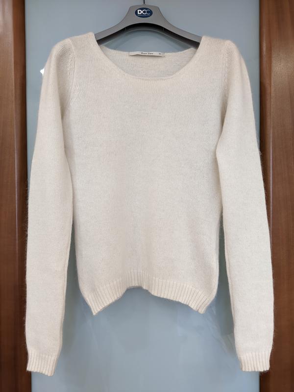 тоненький тепленький свитер молочного цвета, длина 56 см, плечи 36 см, рукав 65 см, ширина между подмышками 44 см, ширина 40 см.