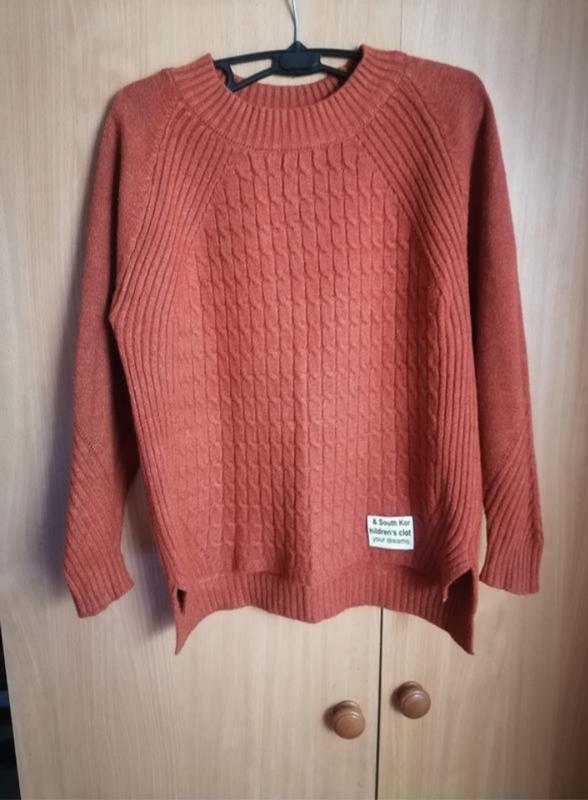 Кофта теплая, кирпичного цвета. Замеры: ПОП - 38, ПОГ - 50, ПОТ - 50. Длина - 56 см, рукав - 50. Материал - акрил.