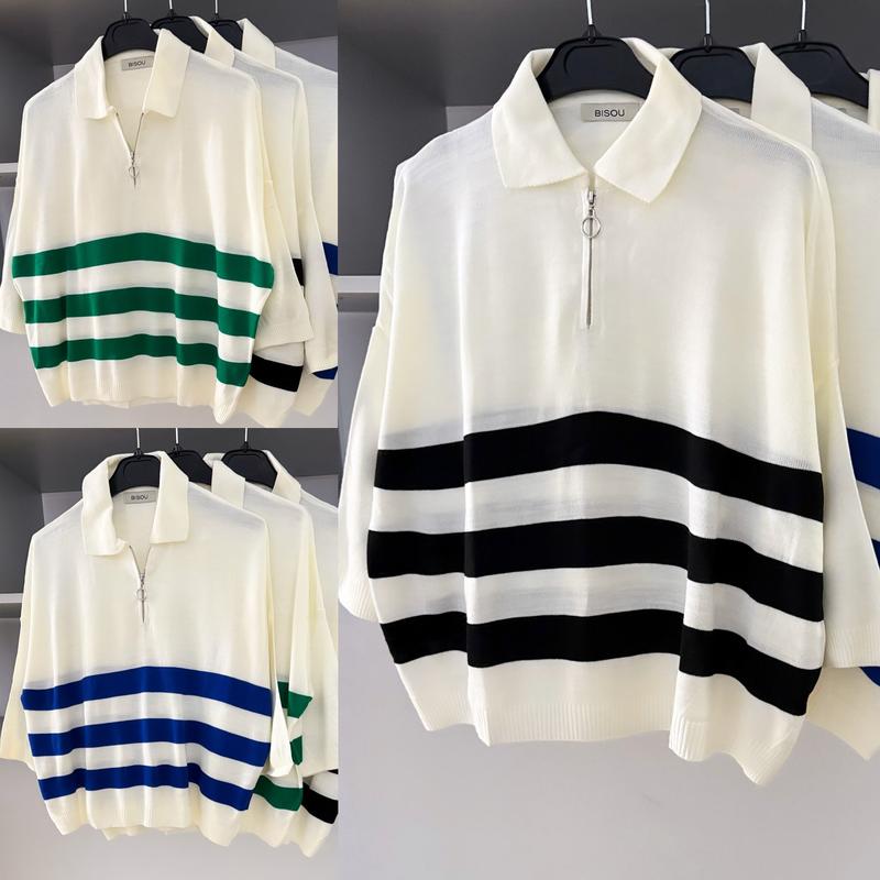 Снижка!!️ Цена 350грн🔥 Очень красивые кофточки оверсайз С черными, синими, зелеными полосками🖤💚💙 Производитель Турция, отличное качество 👌 Тканина трикотаж,вʼязка Размер универсальный ПОГ 65, рукав от воротника 55, длина 59см.