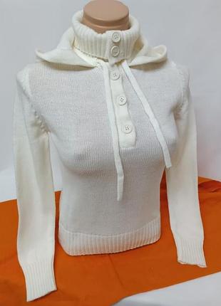Молочный свитерик с капюшоном Размер: S Материал - акрил