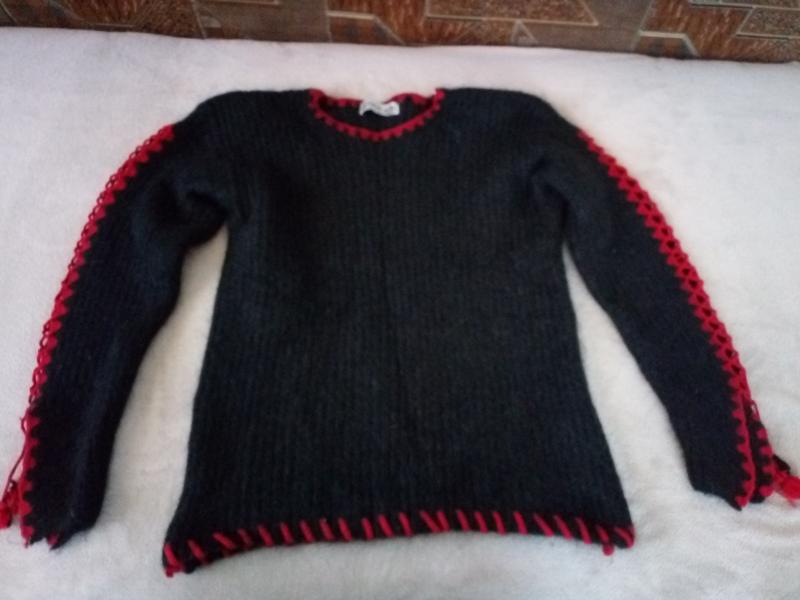 Суперовий мохеровий светрик з цікавим оздобленням, італійського виробництва в ідеальному стані. ПОГ -50см ДОвж.-64см Довж.рукава-61см Півшир. рукава в біцепсі-20см Всі розміри в спокійному ,не розтягнутому вигляді.Річ гарно тягнеться ,але не втрачає форми.