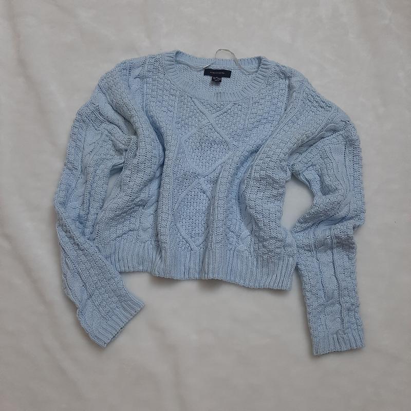 Весняний светрик натурального складу, приємний до тіла. Стан ідеальний, ніжно блакитний колір. Розмір по бірці-M