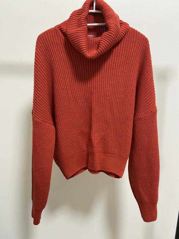 Укороченный свитер размера s С широкой горловиной Средней вязки Вкорочений Длина по спине 53 см ПолуШирина снизу (резинки по низу изделия) 38 см Приспущенные линия плеча