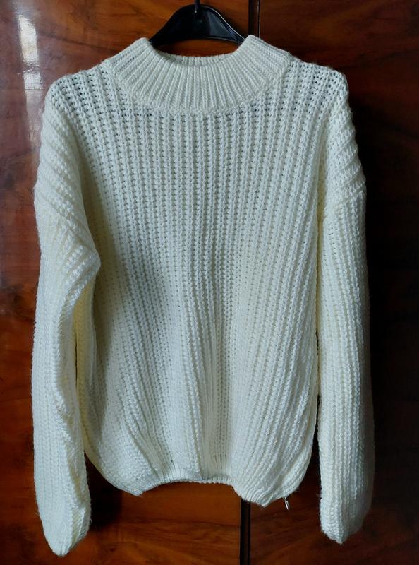 Свитер женский, белого цвета, объемная вязка, зима. На рост 160 см.