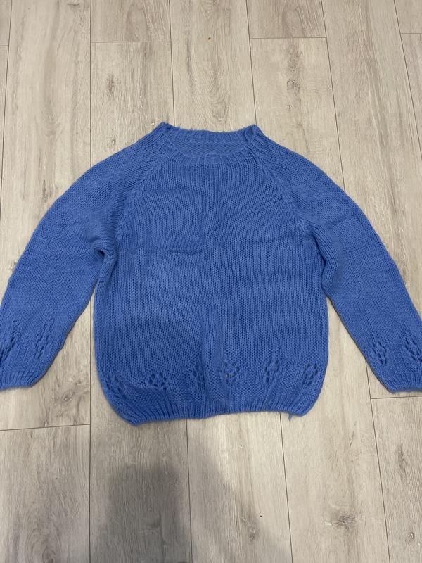 Красивий вʼязаний светр, блакитного кольору, оверсайз, гарно буде сидіти на розмірі M/L