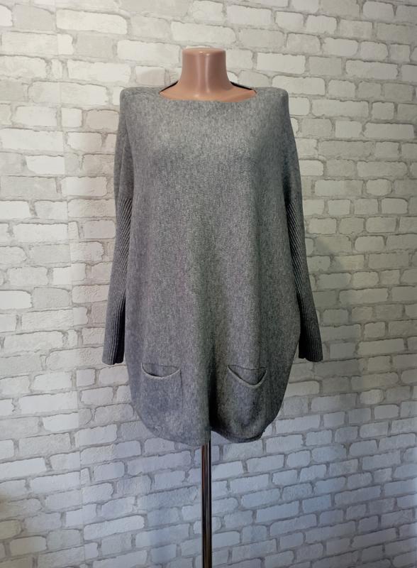 Cвитер овейварс с карманами -P.R.C. 42% viscosa 30% poliammide 28% poliester (очень качественная нитка ,хорошо тянется ) размер не указан От рукава до рукава 145 см ПОГ 78 см ПОТ 76 см ПОБ 78 см Длина рукава от горловины 66 см 7\8 Длина спинки 65 см состояние идеальное ( как новое )