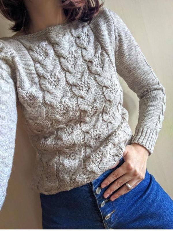 Бирок нет, на ощупь материал похож на акрил. Садится по фигуре, обтягивает. Очень приятный цвет и нежный материал. Мелкая вязка. Состояние супер. Замеры: Длина - 59 см Плечи - 37 см Ширина между подмышками - 41 см Длина рукава - 58 см Ширина рукава сверху - 20 см, снизу - 8 см Ширина снизу - 38 см Стан - идеальный 💕 Доставка Нп в день оплаты.