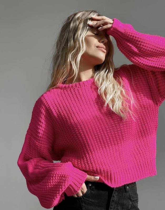 Вкорочений светр з крупної вʼязки рожевого кольору
