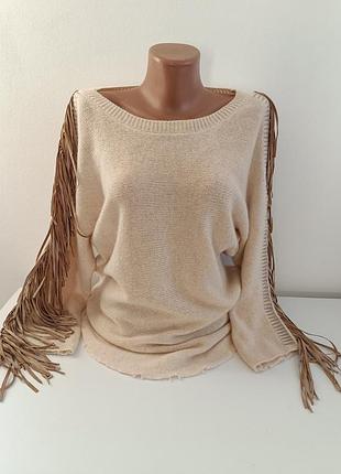 Кашеміровий светр від люксового бренда Zadig& Voltaire. Оброблення шкіряною бахромою. Розмір М/ L . Ціна на сайті 290€. Стан ідеальний. 🖍️ПОГ-54 🖍️ПОТ-45 🖍️ ДОВЖИНА -73 🖍️РУКАВ -56 від горловини