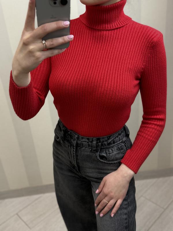 Женский красный гольф. Размер -С. Параметры: длина гольфа - 56 см; длина рукава- 51 см; расстояние между плечевыми швами- 40 см; полуобхват груди - 39см; Ткань хорошо тянется