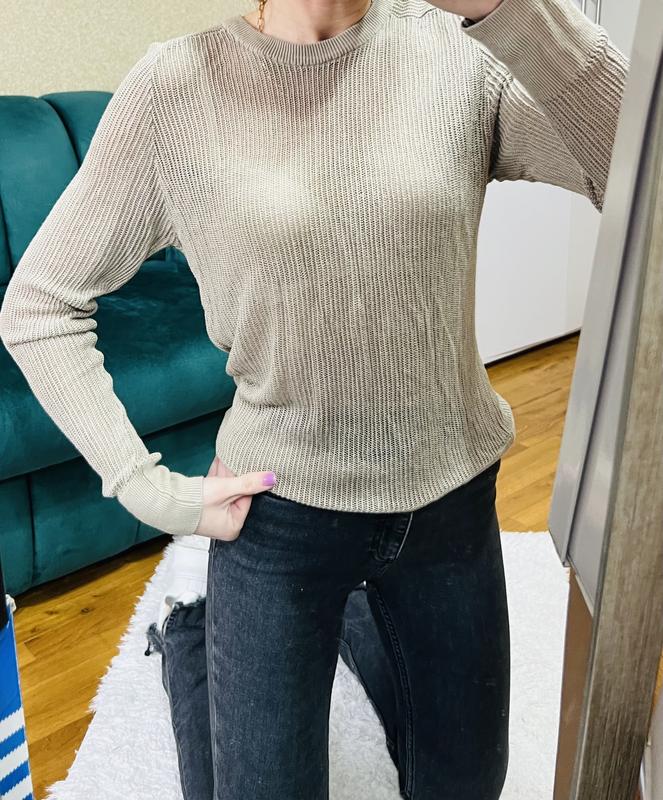 Кофточка от Zara в сером цвете из полупрозрачной вязки.Подойдет на размер s-m.Довжина рукава от шеи 77,грудь 42,длина кофты от шеи 60.Для заказа и уточнения деталей пишите в частные.Цена 250 гр.