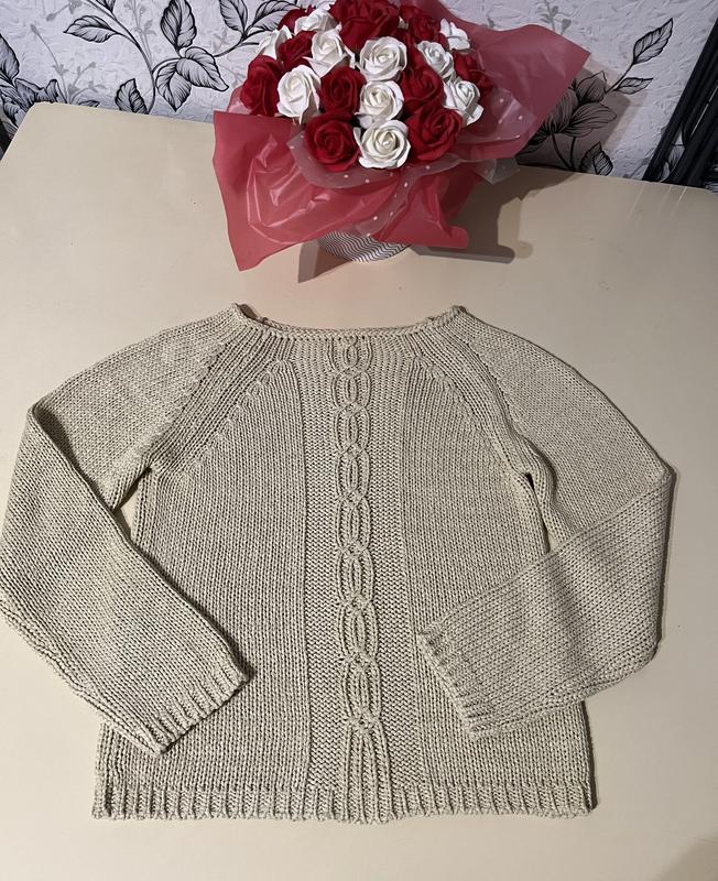 Матеріал 90% акріл, 10% віскоза Заміри: Довжина 53,5 см В грудях 42 см Довжина рукава 65,5 см Стан відмінний, дефектів немає, на мене замалий
