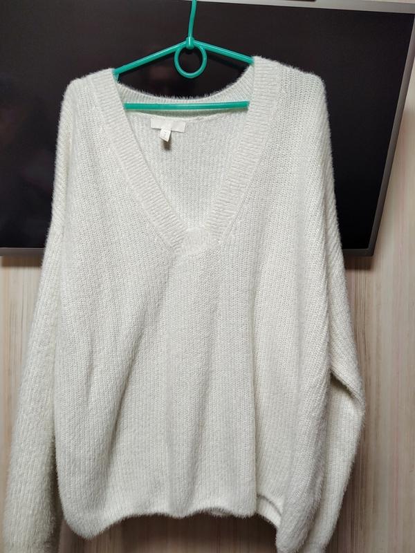 Мягкий и пушистый. Оверсайз. Указан М, но одета на полный L. ПОГ -68 Рукав -55 Длина -63