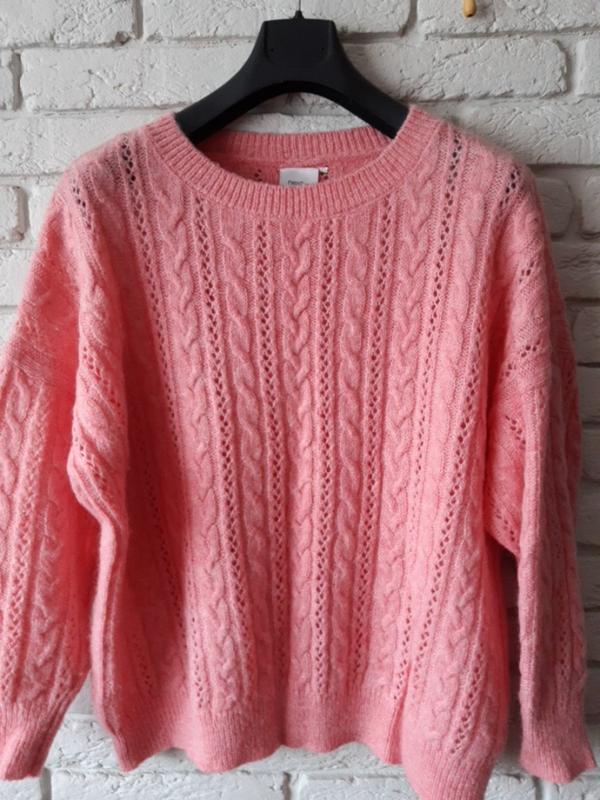 Ажурный свитер оверсайз Next батал нежного розового цвета с добавлением шерсти. Успенная линия плеча. Красивый, теплый и невесомый! Длина 63 см