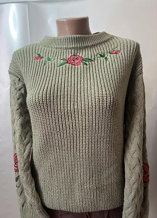 Теплий светр із суміші матеріалів з декором в ідеальному стані . По грудях 53, довжина 61. Дуже приємний, не колеться