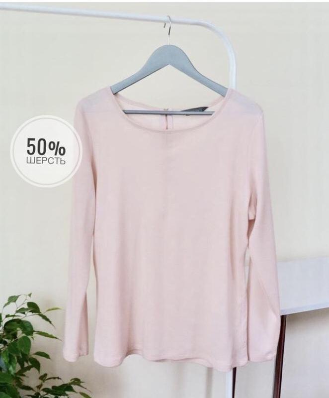 Тонкий свитерок пудрово-персикового оттенка. Сзади молния. Указан размер XL Плечи 42 ПОГ 57 Длина 70 Рукав 64 По низу 57 Состав: 50% шерсть, 50% акрил Состояние нового. Дефектов нет.