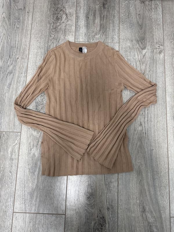 светр HM , сезон весна/ осінь, розмір XS, бежевого кольору , довжина 55см, рукава разкльошоні, по по бокам светра розрізи