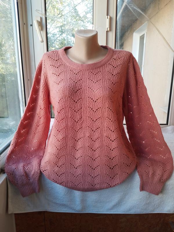 Брендовый ажурный свитер джемпер пуловер большого размера