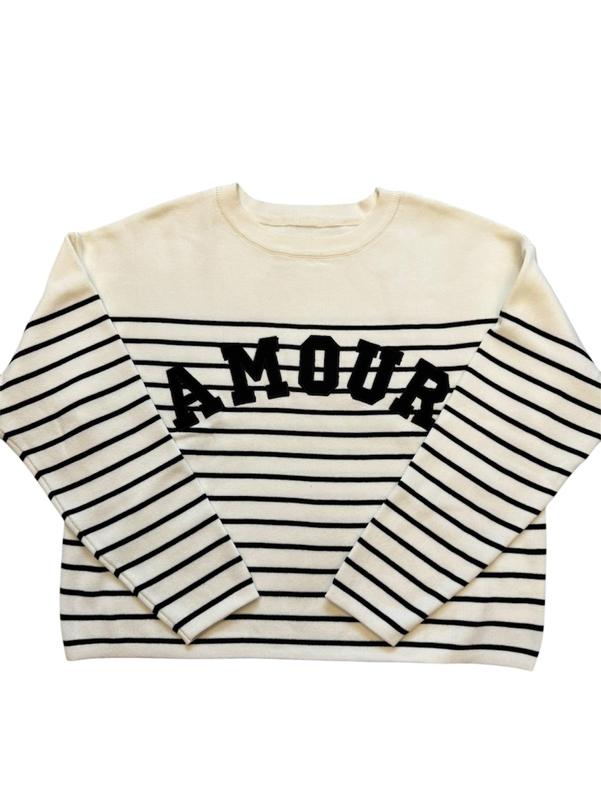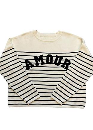 Свитерок Аморе, тоненький , производство Италия, белый в черную полоску , размер универсальный, одет один раз , цена 780