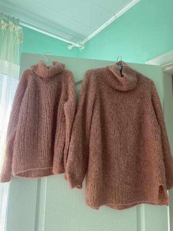 Светри мама, донька, рожево/ міланж, мʼякенький не колеться, в пущений меринос , оверсайз, жіночий светрик з переду трішки коротший, з заду подовження, дуже цікаво виглядає коли разом одягнені.