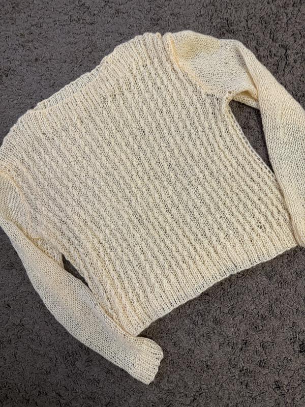 Оригінальна кофта домашньої вʼязки, з золотистою ниткою. Розмір L. Можна носити зад- перед.